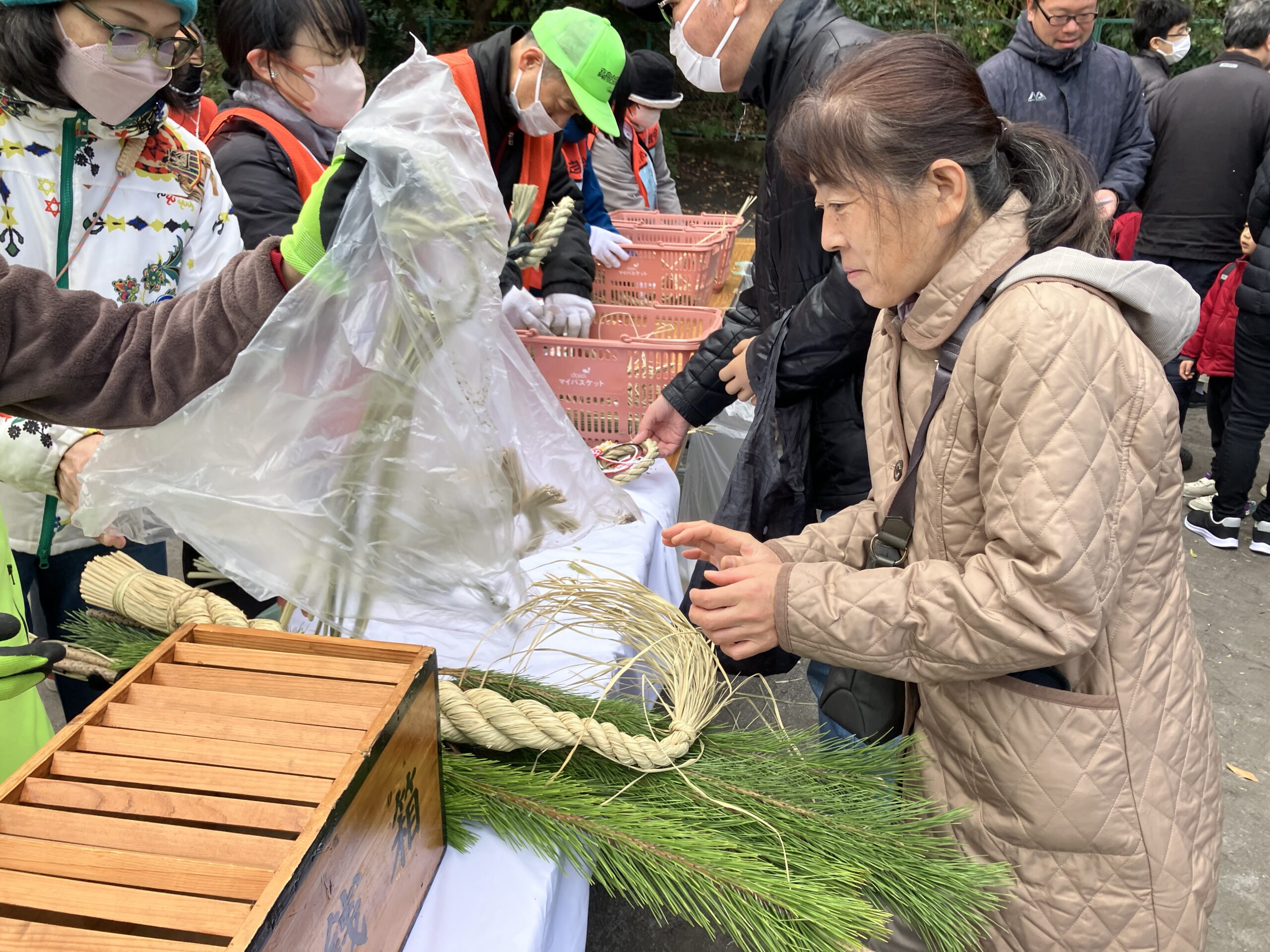 松飾りの仕分けや、お餅を手でこねる作業など、準備に関わる方々の動きは実に手際がよく、無駄がありません。長年積み重ねてきた経験が、そのまま身体に染みついているようでした。